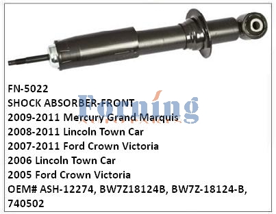 ASH-12274, BW7Z18124B, BW7Z-18124-B, 740502 Front Shock Absorber FN-5022 for 2009-2011 Mercury Grand Marquis, 2008-2011 Lincoln Town Car,2007-2011 Ford Crown Victoria, 2006 Lincoln Town Car,2005 Ford Crown VictoriaModel No.: